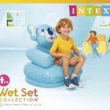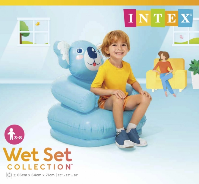 Wybierz wariant miś (65 × 64 × 79 cm) lub koala (66 × 64 × 71 cm). Dzięki niskiej wadze i łatwemu pompowaniu fotelik idealnie sprawdzi się także w podróży. W razie drobnego uszkodzenia skorzystasz z dołączonego zestawu naprawczego.