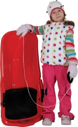 Wytrzymała linka z uchwytem umożliwia łatwe wciąganie sanek pod górę i manewrowanie na płaskim terenie.