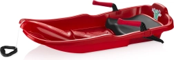 Podwyższone boczne krawędzie, profilowane siedzisko i boczne hamulce ręczne zapewniają pewną jazdę nawet na twardszym śniegu.