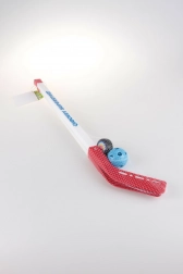 Zestaw hokejowy dla wszystkich małych hokeistów zawiera dwie kije hokejowe o długości 82 cm, piłeczkę i krążek. Idealny do letnich i zimowych treningów!
