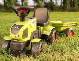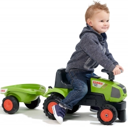 Ten solidny jeździkowy traktor dla najmłodszych zachwyca realistycznym wyglądem CLAAS i łatwą obsługą. Dzięki odłączanej przyczepie dzieci mogą wozić swoje zabawki lub drobiazgi z warsztatu czy ogrodu, a kierownica z klaksonem dodaje zabawie w farmera jeszcze więcej radości.