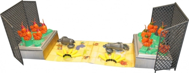 - 10 karaluchów (głowy i tułowie), plansza, 2 bazy, 2 duże przednie barierki, 4 mniejsze boczne barierki, 2 pistolety do tępienia insektów, 10 nabojów, instrukcja