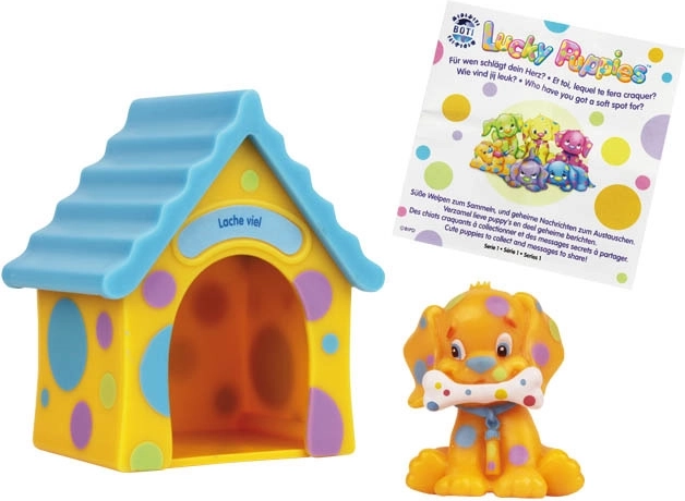 Spraw sobie wesołą psią budkę dla szczeniaczka z kolekcji LUCKY PUPPIES. Każdy pupil ma swój wyjątkowy charakter – od Leniuszka po Śmieszka – i występuje w jednej z sześciu różnych pozycji. Zestaw świetnie nadaje się do samodzielnej zabawy i rozbudowy całej psiej rodzinki.