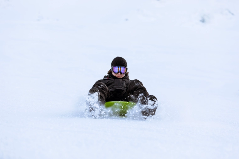 Uchwyty zagłębione w obwodzie talerza ułatwiają start i kontrolę kierunku, także w grubych zimowych rękawicach.