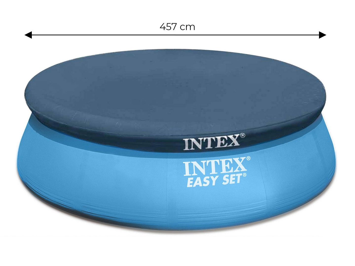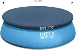 Praktyczna pokrywa INTEX do naziemnych okrągłych basenów o średnicy 457 cm chroni wodę przed liśćmi, owadami i zanieczyszczeniami. Dzięki otworom odpływowym woda nie gromadzi się na powierzchni, a pokrywa pomaga utrzymać stabilniejszą temperaturę wody. Wykonana z wytrzymałego materiału, ma naddatek 30 cm dla bezpiecznego mocowania i jest kompatybilna z basenami różnych marek o szerokości rantu 421 cm.