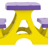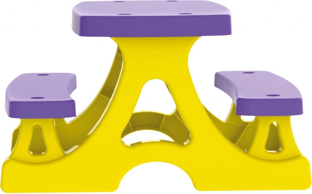 Zestaw w żywej, żółto‑fioletowej kombinacji ożywi każdą przestrzeń i zapewni stabilne miejsce na przekąski, kreatywne aktywności oraz wspólne chwile.