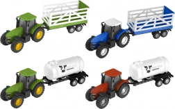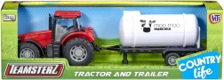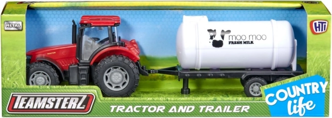 Wybierz traktor w kolorze zielonym, niebieskim lub czerwonym i dołącz przyczepę według uznania – uniwersalną platformę albo stylową cysternę na mleko (w zależności od dostępności).
