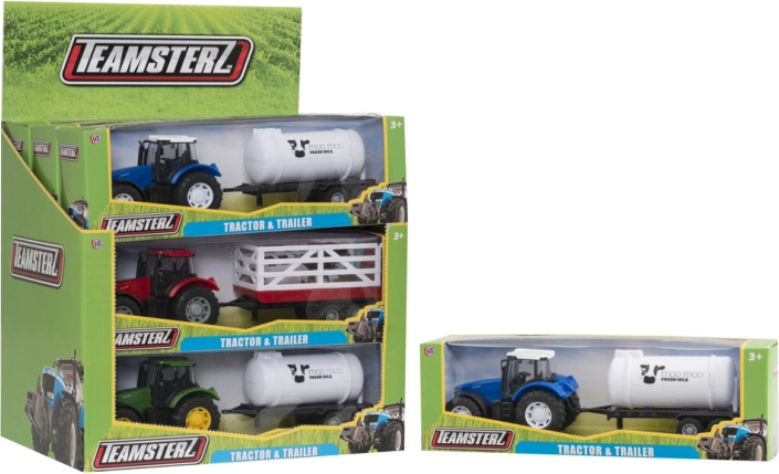 Wyrusz na pola z dopracowanym w detalach traktorem Teamsterz w skali 1:32. Dzięki odłączanej przyczepie dzieci wypróbują różne scenariusze – od przewozu ładunku na platformie po rozwożenie mleka w cysternie. Realistyczne proporcje wspierają wyobraźnię i samodzielną zabawę.