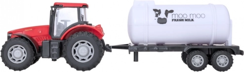 Traktor z białą mleczną cysterną wiernie odwzorowuje sprzęt rolniczy, dzięki czemu dzieci łatwo wcielą się w rolę małych farmerów.