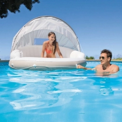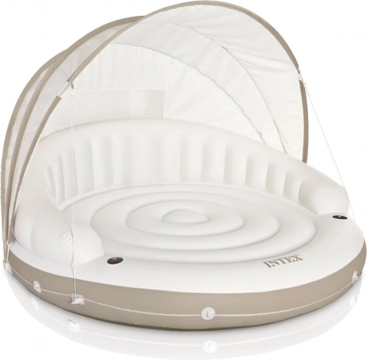 Nadmuchiwany wyspa INTEX to idealne miejsce na relaks nad wodą. Odpinana i regulowana osłona zapewni przyjemny cień, gdy słońce mocno grzeje, a do opalania łatwo ją zdejmiesz. Szeroka powierzchnia i profilowane oparcia pleców gwarantują komfort na długie godziny wypoczynku.