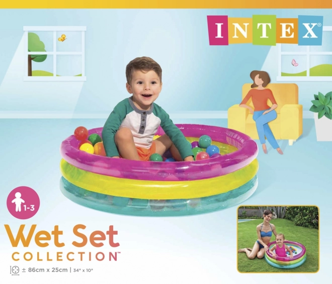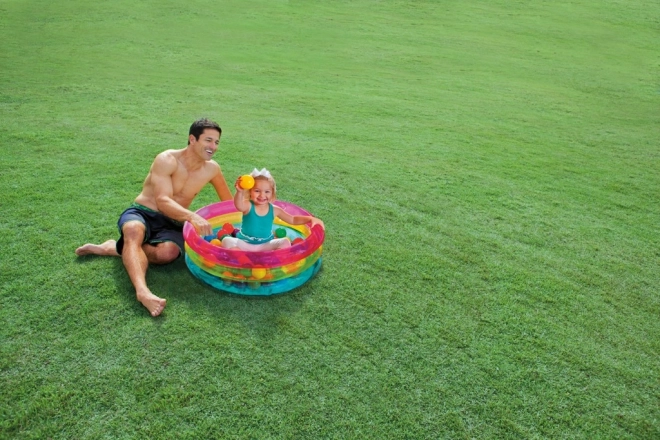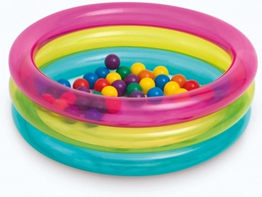 Wesoły nadmuchiwany basen z piłeczkami od INTEX zamieni każdy pokój dziecięcy i ogród w bezpieczny plac zabaw. Przezroczyste ścianki z różowym, żółtym i niebieskim paskiem. Wytrzymałe PVC zapewnia łatwą pielęgnację i długą żywotność, idealny dla dzieci 1–3 lata.