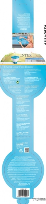 Pływający dozownik od Intexu swobodnie unosi się na powierzchni wody, a jego duży design zapewnia widoczność i bezpieczeństwo. Jest wykonany z trwałego polipropylenu i wyposażony w zabezpieczoną pokrywę, która mieści tabletki chlorowe lub bromowe o maksymalnej wielkości 7,5 cm.