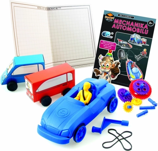 Zestaw EIN-O mechanika samochodu przeprowadzi dzieci przez tajniki działania auta. W atrakcyjny, doświadczalny sposób wyjaśnia podstawowe zasady fizyki, takie jak ruch, siła i transfer energii. Wspiera logiczne myślenie, zręczność oraz zamiłowanie do nauk przyrodniczych.