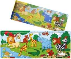 Drewniane puzzle planszowe z motywem zwierzątek z ZOO. Puzzle składają się z 21 elementów.