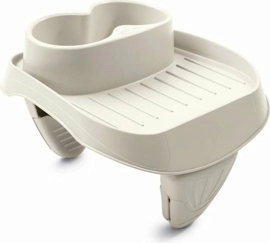 Podwójny uchwyt mieści dwie butelki lub kubki, a także oferuje małą tackę na przekąski lub drobiazgi, które chcesz mieć pod ręką.