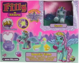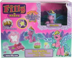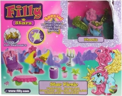 Zestaw Filly Stars zaprasza dzieci do świata pełnego fantazji. Konik z magicznym rogiem, błyszczącymi skrzydłami i koroną z kryształem inspiruje do opowieści o przyjaźni, świętowaniu i herbatkach. Dzięki bogatej palecie akcesoriów dzieci łatwo tworzą własne scenki, rozwijając wyobraźnię oraz małą motorykę.