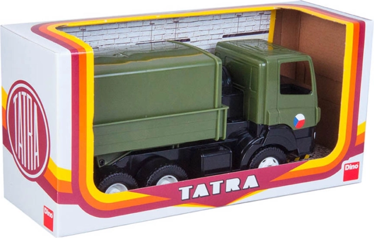 Tatra Phoenix w wojskowym wydaniu jest wyposażona w zamkniętą skrzynię, która może być również pusta. Dzięki wywrotnej skrzyni dzieci łatwo symulują załadunek i rozładunek materiału. Ten model jest wykonany z bezpiecznych plastików bez ftalanów, co gwarantuje bezpieczną zabawę. Tatra jest odpowiednia dla dzieci już od 1 roku życia i jest dumnie produkowana przez czeską firmę Dino Toys.