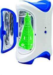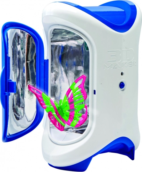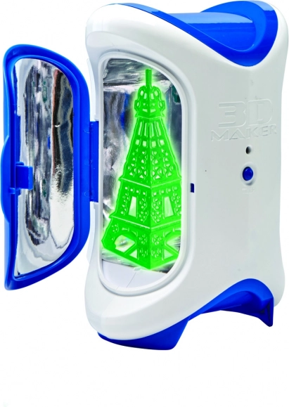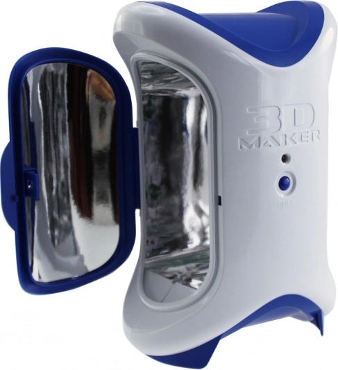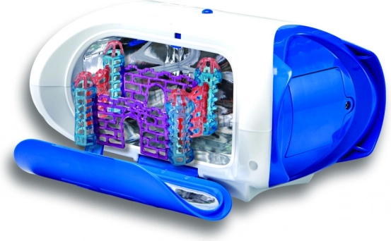 Urządzenie 3D Maker wykorzystuje światło UV w bezpiecznej komorze z okienkiem, dzięki czemu dzieci mogą bezpiecznie obserwować proces tworzenia.