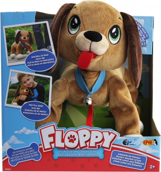 Skaczący piesek Floppy Boggie to świetny towarzysz codziennej zabawy i pierwszych spacerów. Dzieci pokochają jego wesołe podskoki oraz delikatne dzwonienie dzwoneczka, które pobudza wyobraźnię i zachęca do aktywnej zabawy.