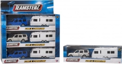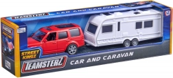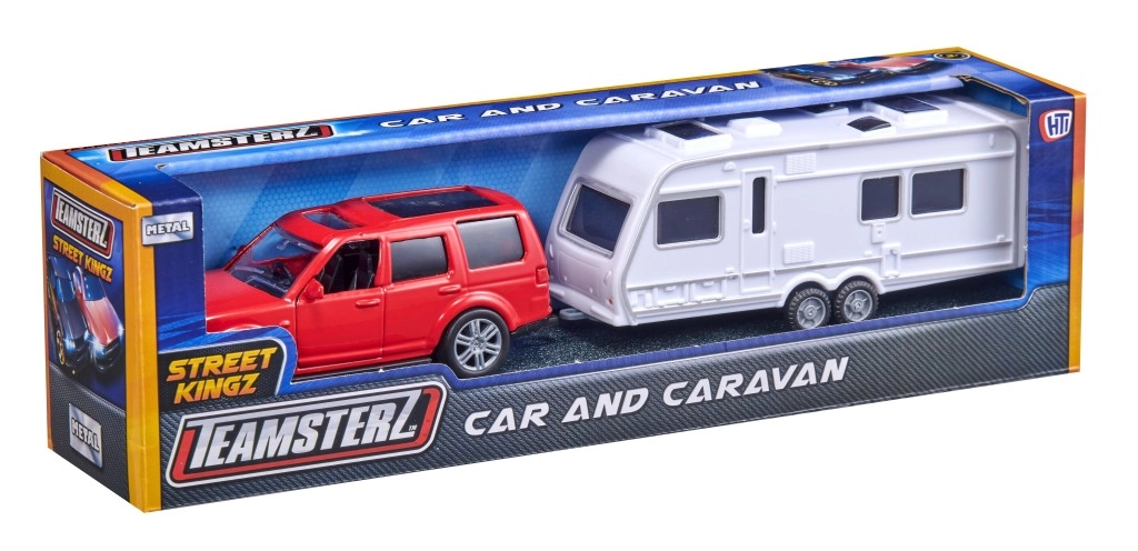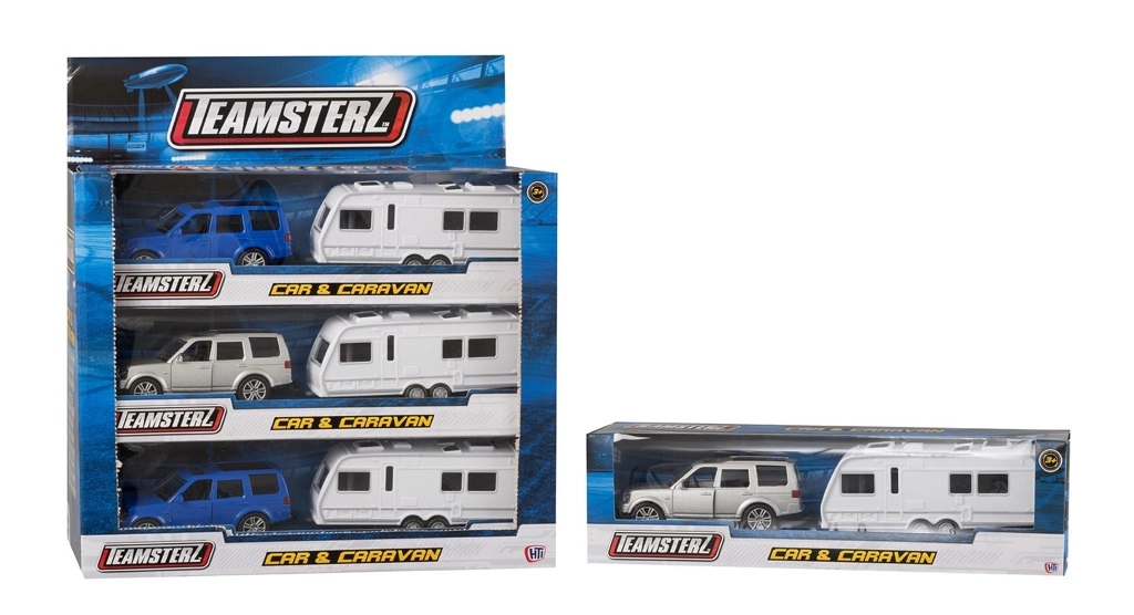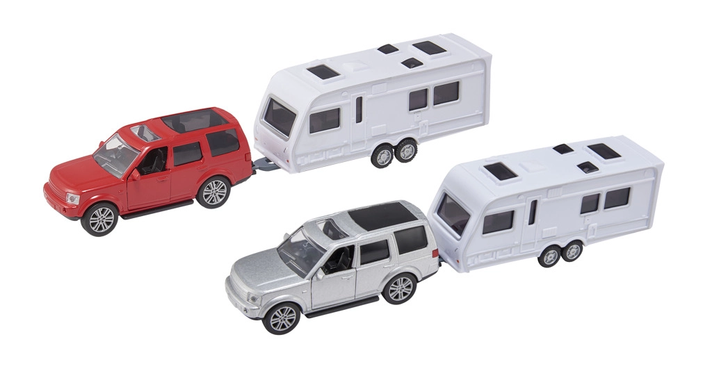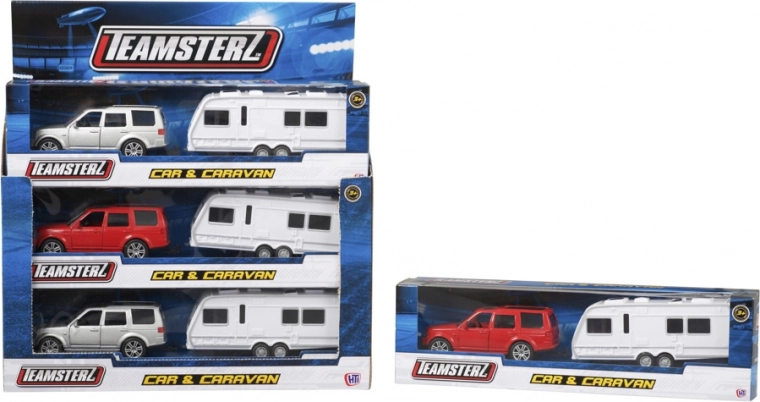 Z dziecięcym zestawem Teamsterz: auto i przyczepa kempingowa Twoje dzieci mogą cieszyć się pełnymi fantazji przygodami. Zestaw zawiera szczegółowe modele SUV-a i przyczepy, wykonane z trwałego plastiku. Autko ma otwierane drzwi, co dostarcza jeszcze więcej frajdy i umożliwia interaktywną zabawę.