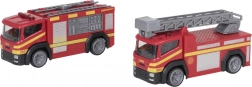 Zestaw zawiera dwa wozy strażackie z obrotowymi drabinami i żółtymi akcentami dla jeszcze większej zabawy.