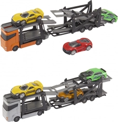 Każda ciężarówka zawiera trzy kolorowe samochodziki, które dodają różnorodności i atrakcyjności dziecięcej zabawie.