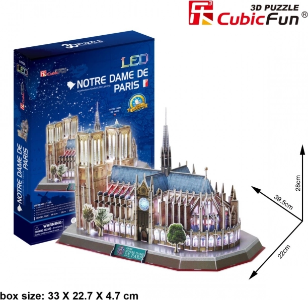 Odkryj urok francuskiej architektury gotyckiej z naszymi puzzlami 3D Katedry Notre-Dame. Ten zestaw oferuje oświetlenie LED oraz wysoką jakość wykonania bez użycia kleju.