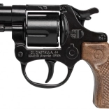Metalowy policyjny rewolwer na kapiszony łączy realistyczny wygląd z bezpiecznym wykonaniem dla dzieci. Dzięki metalowej konstrukcji jest trwały i wygląda wiarygodnie, a pomarańczowa końcówka wyraźnie odróżnia zabawkę od prawdziwej broni. Kompaktowe wymiary 13 × 8,5 cm zapewniają wygodny chwyt dla mniejszych dłoni.