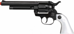 Kowbojski rewolwer – metalowy, czarny na kapiszony – dwanaście strzałów. Wielkość rewolweru 24,5×11 cm. Wyprodukowano w Hiszpanii.