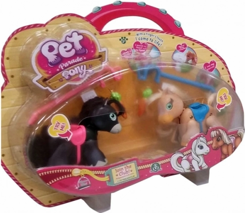 Pet Parade kucyki są jak żywe. Wystarczy lekko nacisnąć i obserwować, jak poruszają się za twoim palcem. Zmieniają ruchy głowy i ogona oraz reagują na dotyk. Prawdziwa przygoda zaczyna się, gdy chwycisz smycz i wyruszysz na spacer. Kucyki zabawnie poruszają nogami i mrugają oczami, co przynosi godziny zabawy i radości.