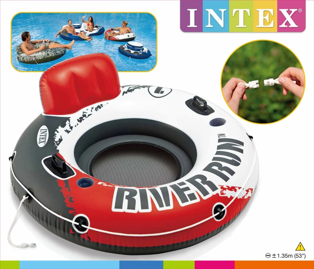 Siedzenie do wody o średnicy 1,35 m. Winyl 0,45 mm. Siatkowe dno. Oparcie dla wygodnego siedzenia. 2 komory powietrzne. 2 uchwyty na napoje. Linka na całej długości dmuchanego koła. Dołączona łatka naprawcza.
