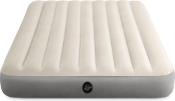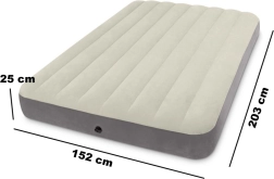 Nadmuchiwany materac INTEX zapewnia wygodny i stabilny sen dla dwóch osób. Dzięki wodoodpornej welurowej powierzchni jest przyjemny w dotyku i nie ślizga się, a trwałe PVC gwarantuje długą żywotność zarówno w domu, jak i w trasie.