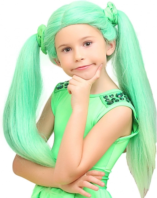 Stylowa dziecięca peruka inspirowana zespołem Lollipopz w wyrazistym zielonym kolorze i z dwoma kucykami. Z wysokiej jakości włókien syntetycznych, wygodne noszenie, uniwersalny rozmiar i idealna na karnawał, koncerty i imprezy.
