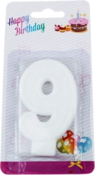 Elegancka urodzinowa świeczka w kształcie cyfry 9 z delikatnym brokatem to doskonały wybór na wyjątkowy moment zdmuchnięcia życzenia. Dzięki czystemu, białemu wykończeniu i brokatowi świetnie pasuje do różnych stylów tortów i dekoracji.