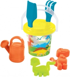 • Kompletny zestaw: wiaderko 1,3 l, grabki, łopatka, sitko, konewka i 2 tematyczne foremki