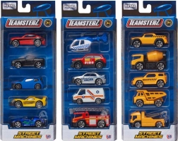 Rozszerzaj garaż o kolejne zestawy TEAMSTERZ STREET MACHINES i twórz własne floty pojazdów wyścigowych, roboczych i ratowniczych.