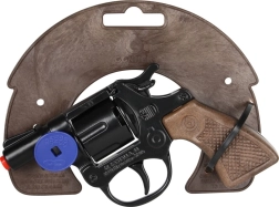 Policyjny rewolwer – metalowy, czarny na kapiszony – osiem strzałów. Wymiary rewolweru 13×8,5 cm. Wyprodukowano w Hiszpanii.