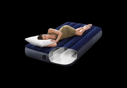 Praktyczna nadmuchiwana mata dla jednej osoby o wymiarach 191 × 99 × 25 cm marki INTEX jest idealna do użytku domowego i w podróży. Wytrzymałe PVC z aksamitnym welurem na powierzchni zapewnia przyjemny dotyk i lepszą przyczepność prześcieradła, a technologia Dura‑Beam Fiber gwarantuje stabilne podparcie i długą żywotność. W zestawie znajduje się łatka naprawcza.