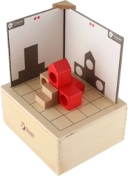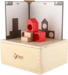 Zestaw jest przeznaczony dla dzieci od 3 lat, a wszystkie elementy są bezpiecznie przechowywane w drewnianym pudełku o wymiarach 18,5 x 16 x 9 cm. Dzieci mogą próbować składać klocki według kart i dopasowywać obie strony, ćwicząc w ten sposób logikę i zręczność.