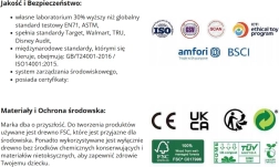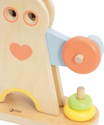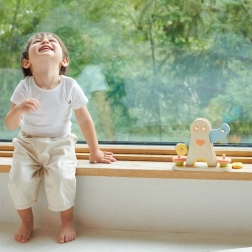 Zabawka wykonana jest z wysokiej jakości naturalnego drewna z gładkimi krawędziami oraz farbami na bazie wody. Pastelowe elementy są atrakcyjne dla dzieci i jednocześnie ponadczasowe.