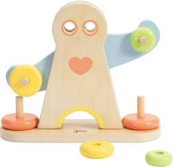 Dzieci przesuwają kółka po ramionach figurki i obserwują, jak zmienia się wyważenie. W naturalny sposób rozumieją różnicę między lekkim a ciężkim i ćwiczą logiczne myślenie.