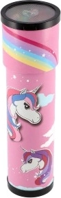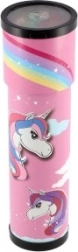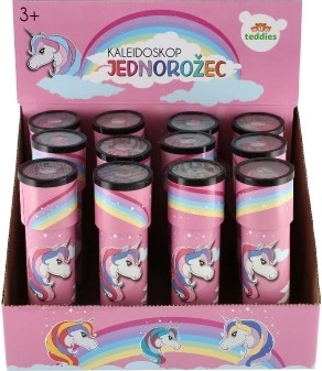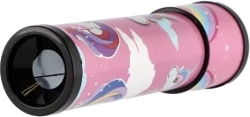 Wesoły różowy design z jednorożcem i tęczą pobudza wyobraźnię i czyni z kalejdoskopu ulubioną zabawkę małych marzycieli.