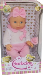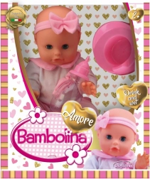 Lalka Bambolina wygląda jak prawdziwe niemowlę, które pije i siusia. W zestawie znajduje się różowy nocnik i butelka do karmienia, które pobudzają dziecięcą wyobraźnię i stają się towarzyszami zabawy.