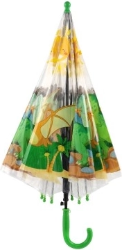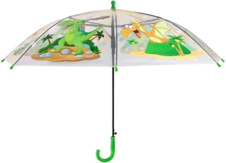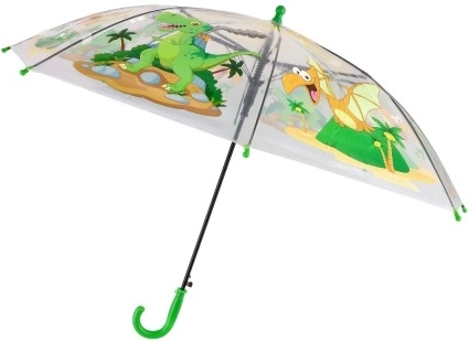 Wesoły dziecięcy parasol z przezroczystą czaszą i kolorowymi motywami dinozaurów zamieni deszczowe dni w zabawę. Dzięki automatycznemu otwieraniu, lekkiej konstrukcji i wygodnej zielonej rączce jest łatwy w użyciu i idealnie leży w dziecięcej dłoni.