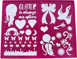 Odkryj magię Błyszczącego studia Glitterific, które pozwoli Ci tworzyć piękne i lśniące tatuaże oraz dekoracje. Dzięki specjalnemu długopisowi i szablonom możesz tworzyć różne kształty i nakładać brokat z maksymalną precyzją.
