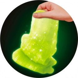 Zrób własnego slime’a. Wsyp proszek do kubeczka, dodaj brokat i figurkę. Wlej wodę do zaznaczonej kreski, zamknij kubeczek i energicznie wstrząśnij mieszaniną. Następnie otwórz kubeczek i odczekaj pięć minut. Slime jest gotowy. Łącz kolory, dodawaj brokat i ciesz się świetną zabawą ze slime’em. Świeci w ciemności. Dla dzieci od 6 lat.