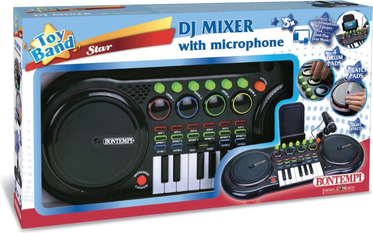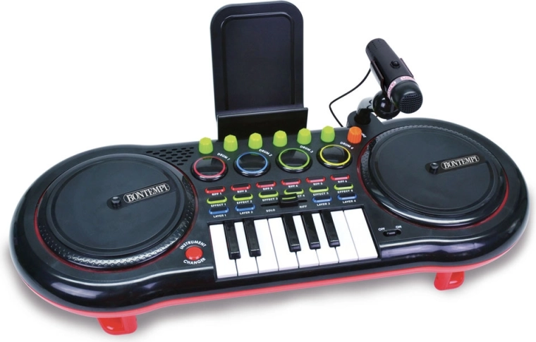 Mikser – 2× panele DJ z efektami świetlnymi, 5 efektów wokalnych, 6 fraz muzycznych, 7 efektów muzycznych, 4 aranżacje, pole do gry, 13 klawiszy z 3 różnymi brzmieniami, 4 dźwięki perkusyjne, regulowana głośność, możliwość podłączenia MP3 (smartfon, iPod, odtwarzacz CD), kabel nie jest częścią zestawu, podłączenie mikrofonu w zestawie, złącze do słuchawek nie jest częścią zestawu, uchwyt na MP3 w zestawie.