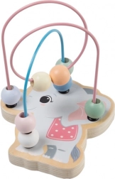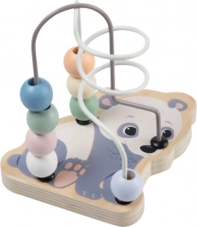 Ten drewniany labirynt z koralikami to idealna zabawka do pierwszego odkrywania świata. Kolorowe koraliki łatwo przesuwają się po metalowych pętlach i wspierają rozwój małej motoryki, cierpliwości oraz koncentracji. Wesoły design ze zwierzątkami zachwyci dzieci od pierwszego spojrzenia.