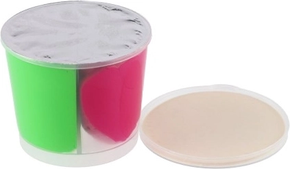 Kubeczek o wymiarach 7 × 6 × 7 cm utrzymuje masę dłużej świeżą i ułatwia przechowywanie. Mix trzech wyrazistych kolorów zachęca do eksperymentowania, mieszania i wspólnej zabawy.