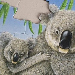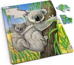 Odkryj fascynujący świat puzzli Larsen z motywem koali! Każdy element ma unikalny kształt, dzięki czemu dzieci rozwijają kreatywność i wyobraźnię. Puzzle układa się na sztywnej podkładce i łatwo przechowuje dzięki formie planszowej.